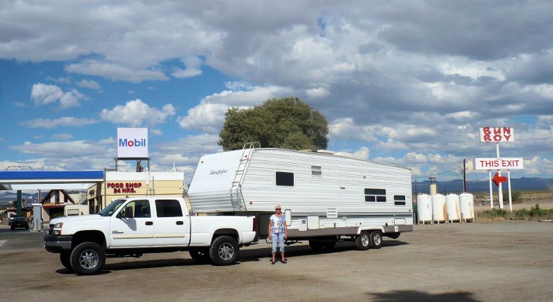 De laatste tankstop in California het hier de camper van Aalt Doldersum in vol ornaat. Wat een fijn ding voor ons doel .